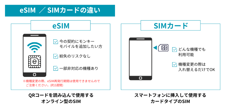 eSIMをご利用の方に限り、機種変更をする場合はeSIMの再発行が必要です。